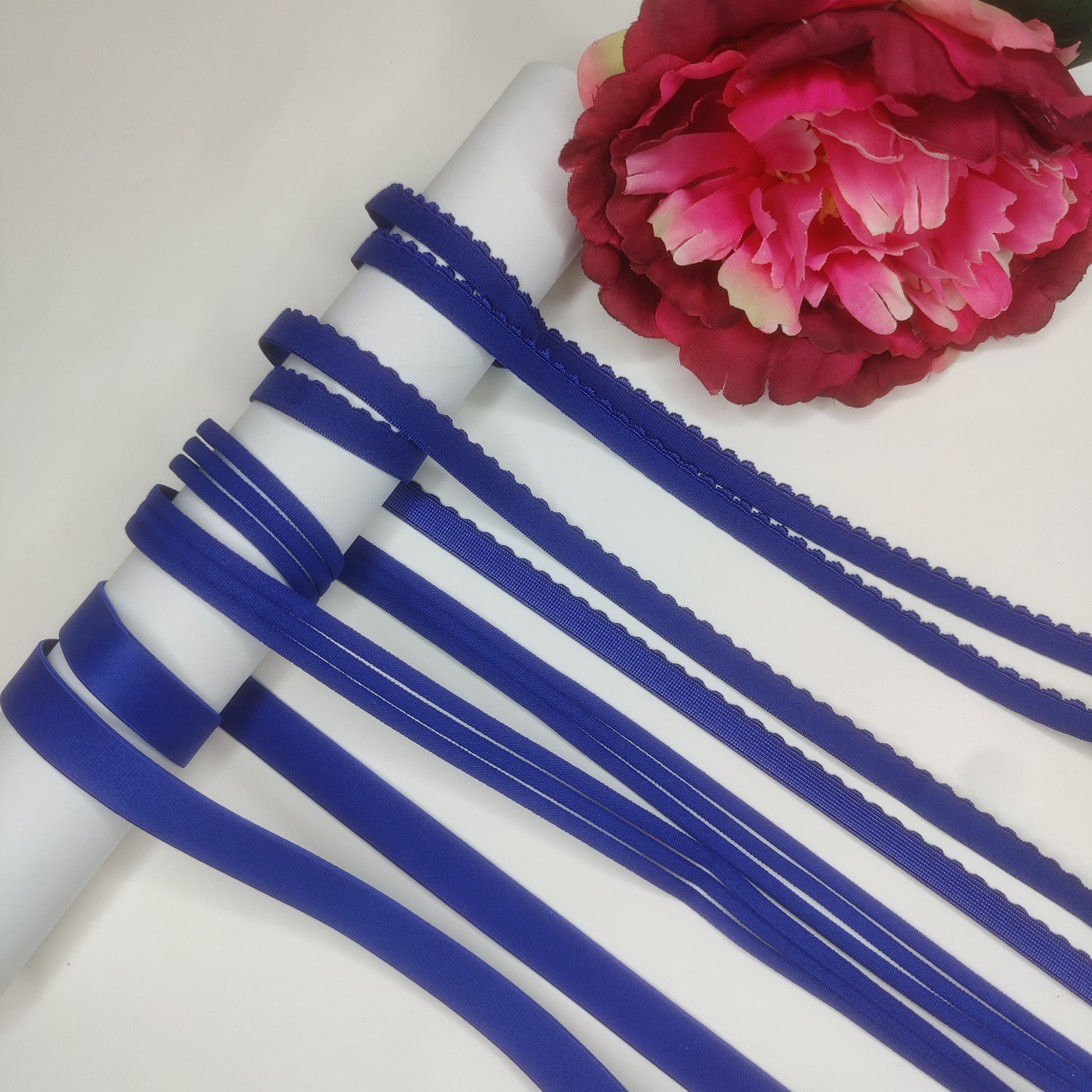 MIX & MATCH, Gummis. 15 mm BH-Trägerband, Unterbrustgummi, Zierlitze in königsblau. Meterware