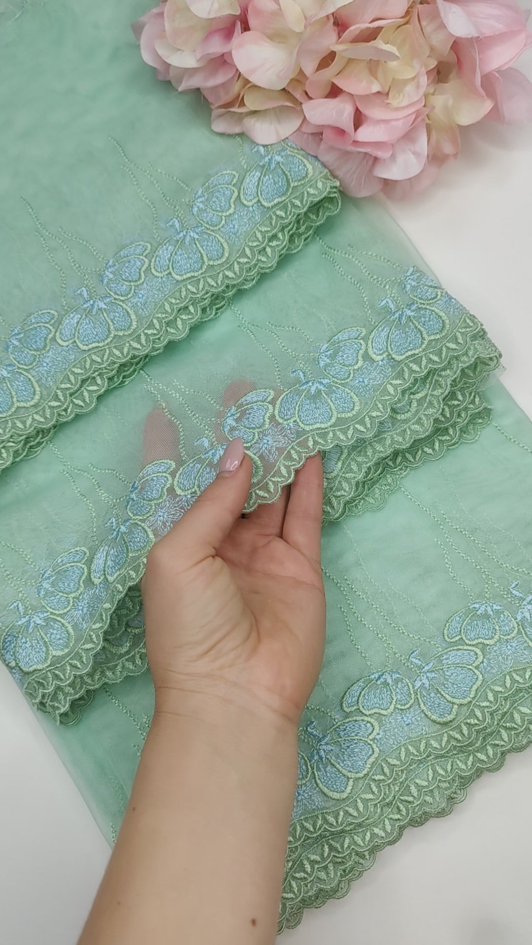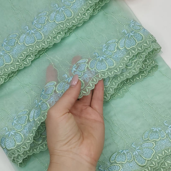 - 2 Meter Stickerei-Spitze, unelastisch x 16 cm (Materialzusammensetzung: 100 % Polyamid)