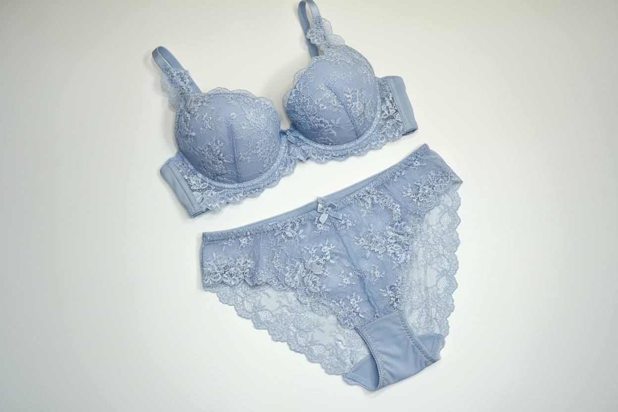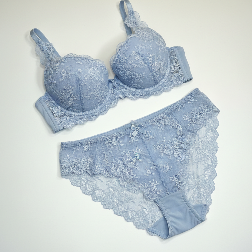Breite elastische Spitze in hellblau. Preis per 1/2 Meter.